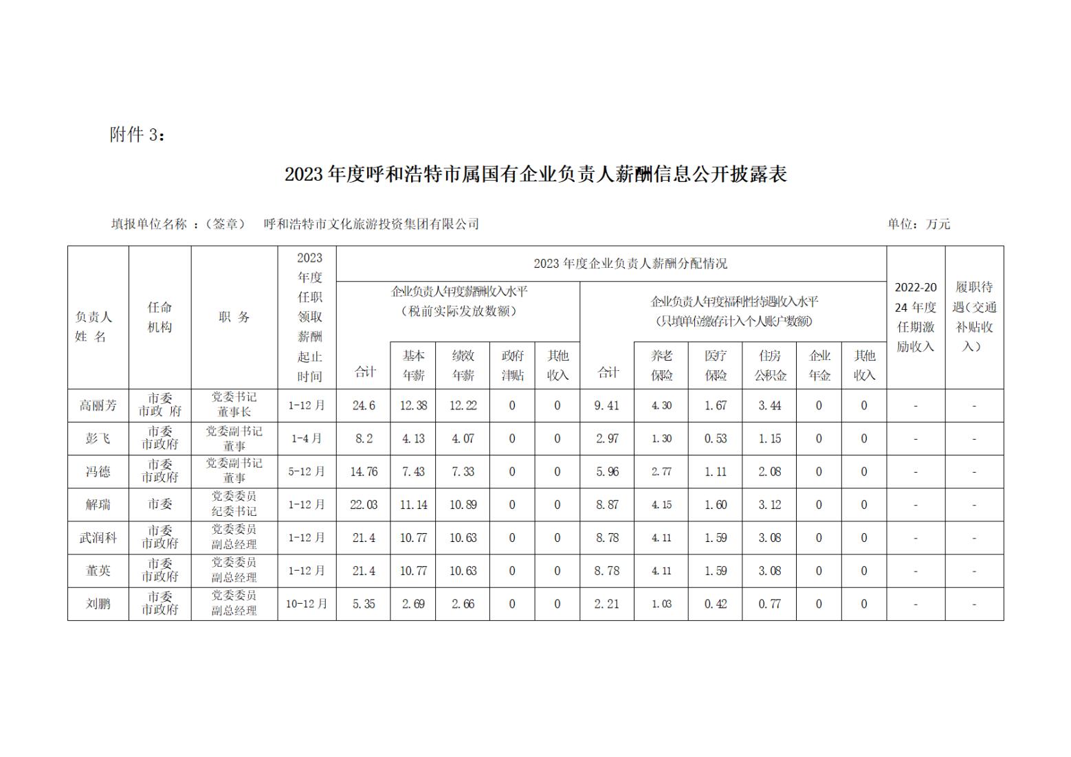 2023年度呼和浩特市直屬國有企業(yè)負(fù)責(zé)人薪酬信息公開